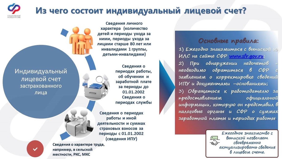 Из чего состоит индивидуальный лицевой счет? Ежегодное знакомство с выпиской позволяет своевременно актуализировать сведения в лицевом счете.