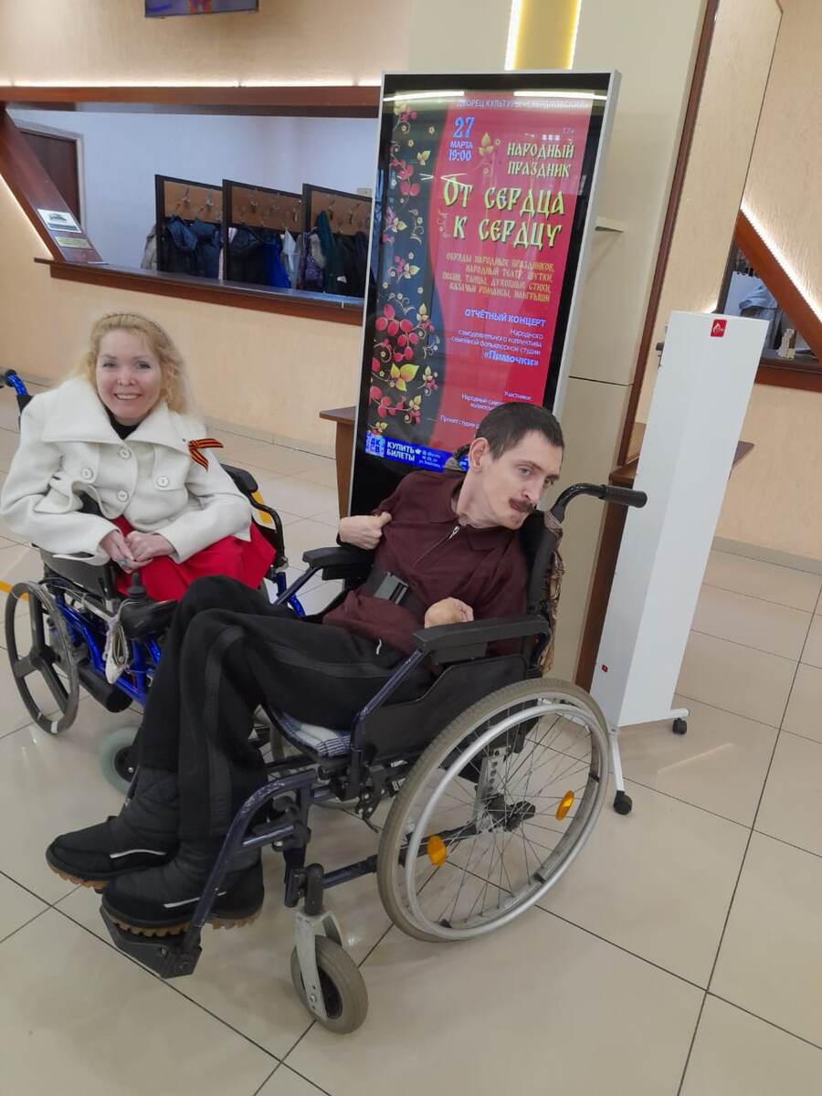 Стоимость билета 300 рублей, для инвалидов -50% — это значит 150 рублей или один билет на двух инвалидов. Мы с Марией Ивановной любим ходить по одному билету на двоих, но сегодня по техническим причинам она не смогла приехать…