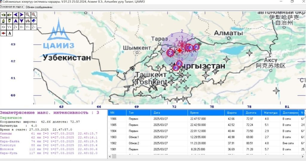 🔍 Жер титирөөлөрдүн күчү жана очогу тууралуу маалыматтар Институт сейсмологиясы тарабынан берилди.