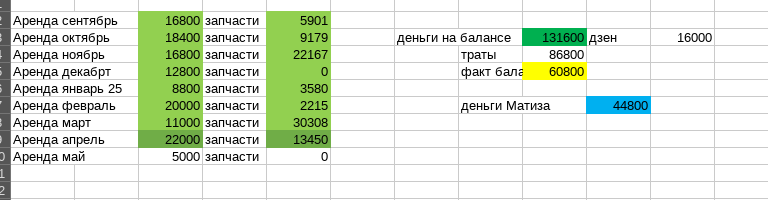 Всем привет!🙃 Предупреждаю, в этой статье больше картинок, чем текста! Какие-то общие у меня статьи пошли😶Но не могу с этим ничего поделать. Настало теплое время года, а значит пора заняться машинками. Не секрет,что я сама себе плачу аренду. И сегодня я хочу рассказать, как бюджет матиза сильно упал вниз. И даже это его не пошатнуло. Не много предыстории: С сентября 2024 я решила платить сама себе аренду по 800 рублей. С февраля 2025 увеличила стоимость аренды до 1000 рублей. Т.к. поняла,что в принципе справляю. Но моя аренда не правильная и вместо того чтобы платить 7/0, я плачу 5/2 . На данный момент счет матизика выглядит так. И да в мае у меня было полноценных 5 рабочих дней 😁 Из самых затратных месяцев- это Ноябрь. В том месяце я попала на замену сцепления. И хочу рассказать, на что было потрачено аж 30 тысяц в марте! Ну поехали: Перво-наперво супруг купил штуку, чтобы ставить жгуты. Матиз крайне любит собирать саморезы и за прошлый год штук 5 я точно собрала. Поэтому эту трат