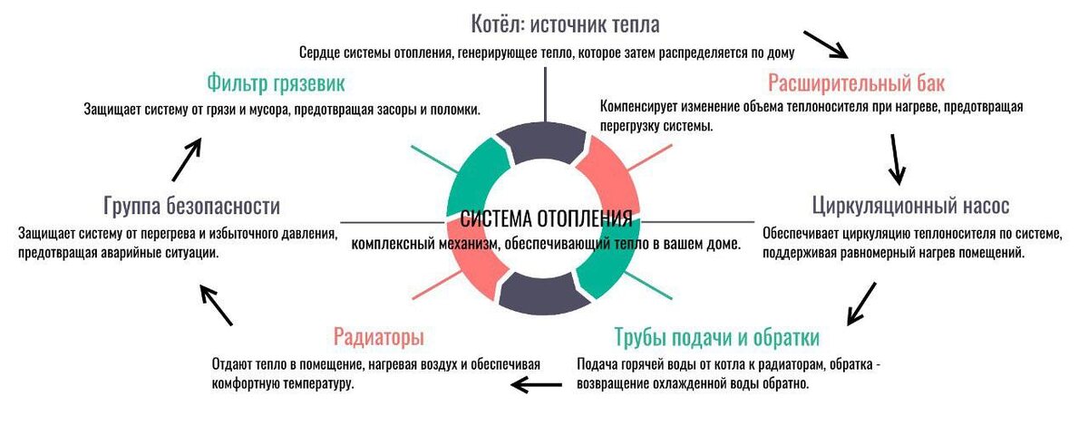 Представляем вам наглядную схему всех ключевых элементов современной системы отопления частного дома. В этой инфографике вы увидите: • Источник тепла и его функции • Систему распределения теплоносителя • Элементы безопасности • Отдачу тепла в помещение 💡 Важно понимать, как взаимодействуют между собой все элементы системы, чтобы сделать правильный выбор оборудования и обеспечить эффективную работу всего контура отопления. Что из представленных компонентов, по вашему мнению, наиболее важный элемент системы отопления? Делитесь своим мнением в комментариях! #отопление #системаотопления #компоненты #инфографика #частныйдом