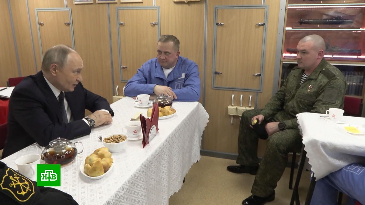 Беседа с моряками в Мурманске прошла на борту атомного подводного крейсера. Чаепитием такое мероприятие можно назвать разве что на языке протокола, темы поднимались самые серьезные. Личный состав в беседе с главой государства интересовала в первую очередь его оценка хода специальной военной операции. Владимир Путин, отвечая на вопрос, сказал, что Россия постепенно и уверенно движется к достижению всех целей, заявленных в начале СВО.