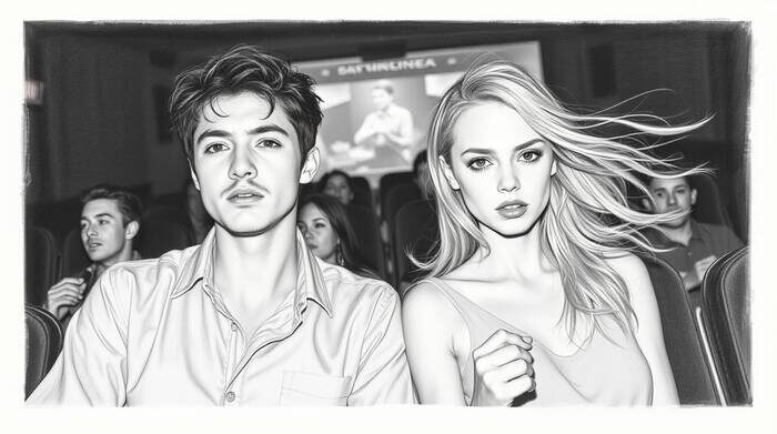 Сел в зале, народу – три калеки. Наблюдает за действом на экране, а сам чувствует – сверлит его кто-то взглядом. Поворачивается – через пару рядов от него девка сидит. Бледная, как мел, глаза тёмные, пустые какие-то. Смотрят они друг на друга несколько секунд, она вдруг встаёт и молча подсаживается рядом. От неё холодом так и прёт, у деда аж зубы заломило.