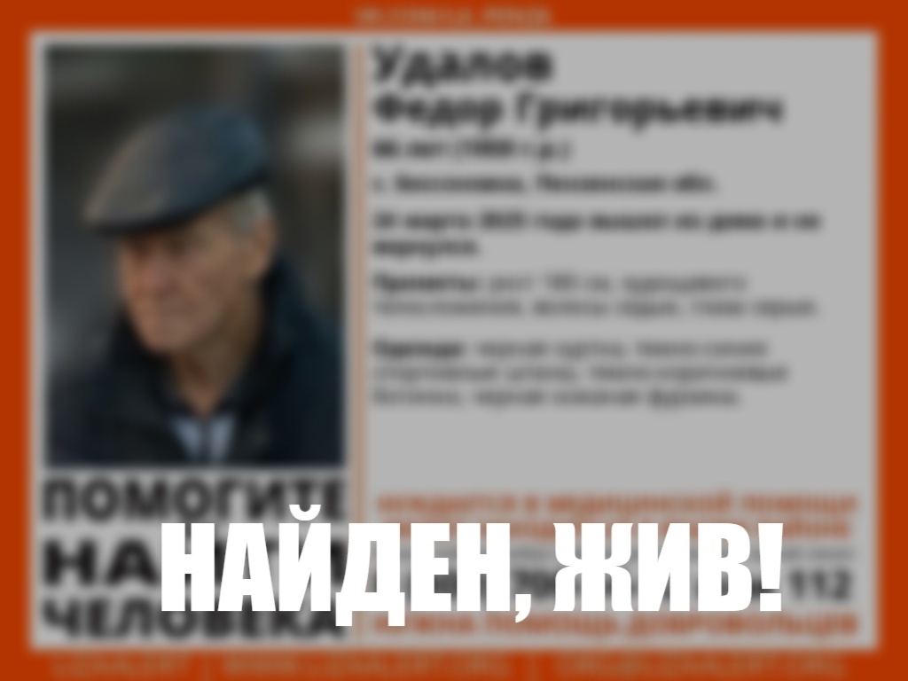 В Пензенской области окончены поиски 66-летнего пенсионера, пропавшего в Бессоновском районе. Напомним, пожилой мужчина ушел из дома 24 марта, обратно он не вернулся. 26 марта волонтеры из поискового отряда «Лиза Алерт» начали публиковать ориентировки для поиска пропавшего. Отмечалось, что житель села Бессоновка нуждается в медицинской помощи. К счастью, в скором времени пенсионера все же удалось найти. «Найден, жив!», – сообщили волонтеры 27 марта. Где пропадал несколько дней пенсионер и при каких обстоятельствах он был обнаружен, не уточняется. «Огромная благодарность волонтёрам, благодаря которым был найден наш родственник», – написала в соцсети одна из жительниц региона.