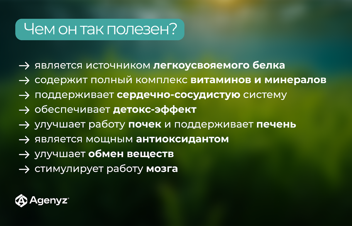 И самое удивительное — эта водоросль доступна каждому из нас, а мы даже не подозреваем, насколько она полезна. О чем речь? Читайте наш материал, чтобы узнать! Чем он так полезен? Чтобы подробно перечислить все ценные свойства этого суперфуда, не хватит объема одной статьи — поэтому мы выделили лишь самые значимые преимущества водоросли, которой посвящен наш материал: В чем преимущество этого суперфуда перед другими продуктами?