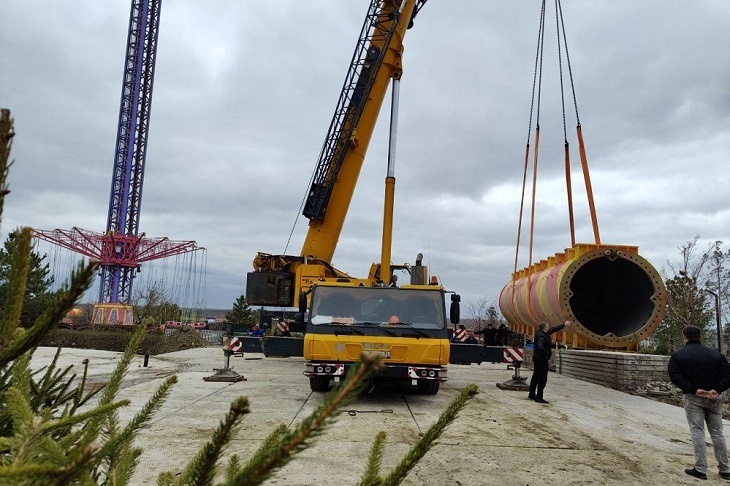 - В настоящее время на территории будущего аттракциона «Башня свободного падения» ведется разгрузка крупных деталей – уже доставлены первые три колонны самой башни. Вес каждой колонны – около 30 тонн, - сообщили в пресс-службе парка.