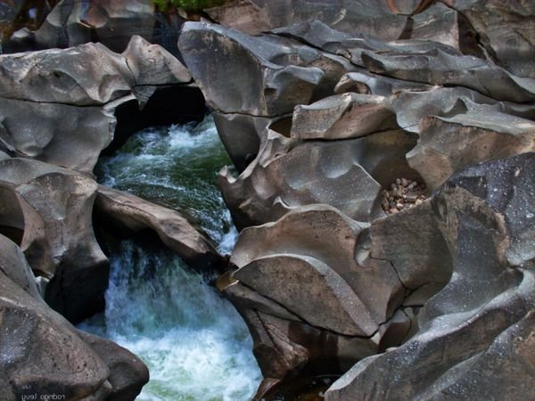 Самая удивительная часть этого места – это река Сан-Мигель, которая причудливо "вырезала" свои русла прямо в камне. В сезон дождей здесь образуются небольшие водопады и естественные бассейны с кристально чистой водой, в которых можно купаться. Представьте себе – вы лежите в природном джакузи, а вокруг вас космический пейзаж!