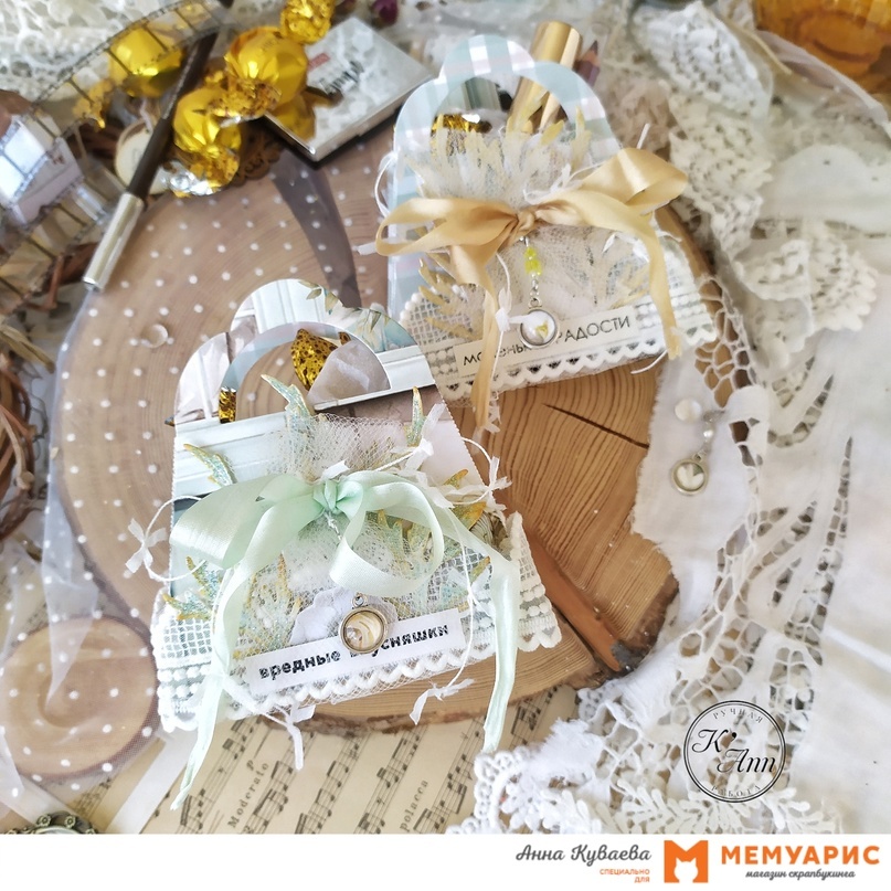 Сегодня мы к вам с вопросом! Что можно точно найти в женской сумочке? Конечно много чего, но думаем почти в каждой можно отыскать вкусную конфетку, тушь или блеск для губ, согласны!?? Всем привет! Я, Анна Куваева покажу сегодня что в моих! Конечно вдохновением послужил новый нож для вырубки Agiart «Сумочка» да и тематика нашего задания Женские штучки тоже навеяла… Рассмотрим подробнее сами сумочки. Прекрасный размер на мой взгляд позволяет положить туда небольшой презент или вкусняшку и порадовать получателя. Что лежит в моих, думаю по надписям из наборов Говорилок картонных можно догадаться, но содержимое может быть любым! В основе сумочек плотная бумага от Mintay papers "Spring Is Here", этот набор настоящая весна во всей красе и палитре, присмотритесь к нему! В работе этот лист, из которого получаются как раз 2 сумочки, но одну я вырубила из фоновой стороны, а вторую из насыщенной принтом, даже не знаю какая мне нравится больше! Сами сумочки украшает ажурное хлопковое кружево, выруб