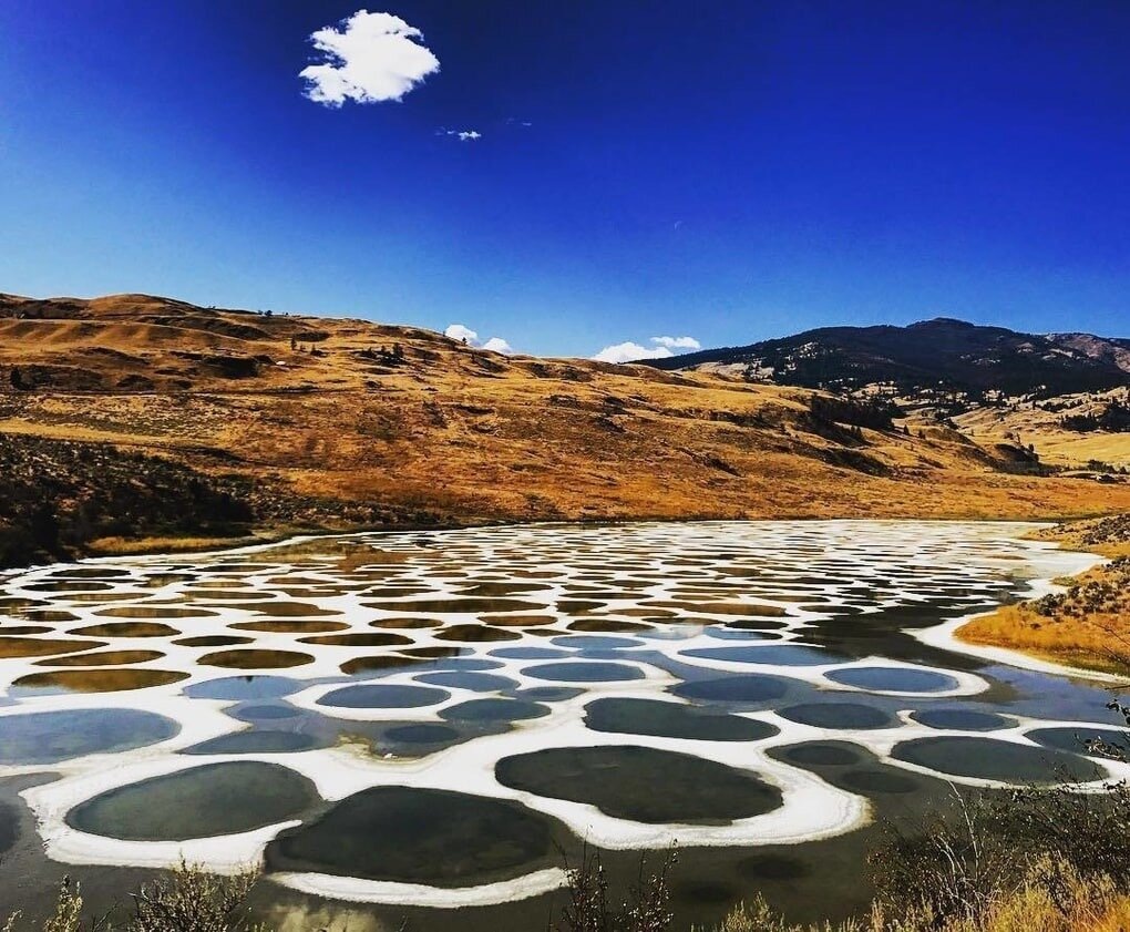 Представьте себе озеро, на поверхности которого словно раскиданы громадные круглые пятна — как будто кто-то поиграл с акварелью на воде. Выглядит это фантастически, даже нереально! Но озеро Клилук в Канаде не просто визуальное чудо — оно таит в себе уникальные природные процессы и древние легенды. Клилук, или как его ещё называют Пятнистое озеро, находится в канадской провинции Британская Колумбия. На первый взгляд, это обычное солёное озеро, но в жаркое время года оно превращается в пейзаж с другой планеты. Когда вода испаряется, на поверхности остаются минеральные круги самых разных оттенков: жёлтые, зелёные, голубые и даже белые. В зависимости от концентрации минералов цвет и форма этих пятен меняются, создавая живую картину, которая никогда не повторяется дважды. Секрет этого феномена — в необычайном составе воды. Озеро Клилук содержит высочайшую в мире концентрацию минералов, таких как: 🔹 сульфат магния (отвечает за голубые оттенки)