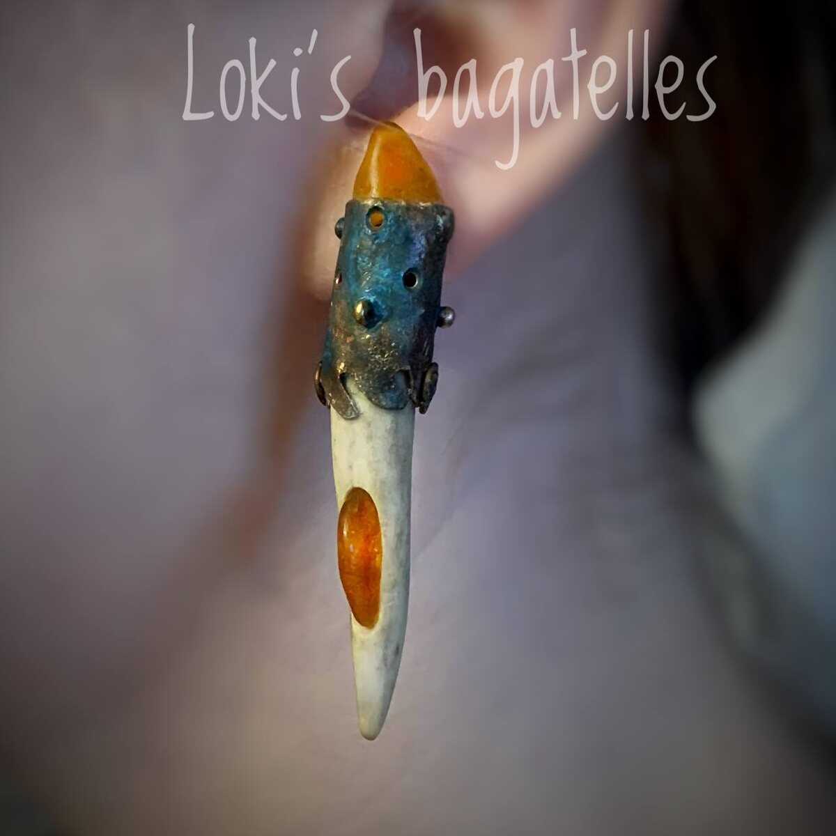 В последнее время у меня создаются работы, если так можно выразиться, концептуальные. Даже на фоне того, что я и вообще не люблю бессмысленные «просто красивости», они выделяются некой глубокомысленностью. Например, наконец реализовалась часть сделанных ранее эскизов коллекции в русском стиле (о чём я писала ранее и надеюсь подробнее рассказать позднее:) А буквально вчера закончила украшение в архаичном стиле. Всё получилось, как я люблю: медь, бронза, янтарь… который на этот раз дополнен рогом оленя. Всё-таки прошлогоднее посещение выставки «Сны Сибири» в ГИМ даром не прошло! Моносерьга «ДНЕВНОЙ СТРАЖ» из меди и бронзы с оленьим рогом и натуральным янтарём, на серебряном гвоздике. Инкрустированный в рог слегка отполированный янтарь сохранил часть первозданной «корочки». Украшение в наличии, пишите для приобретения! Все работы в наличии здесь А ещё эту моносерьгу и другие мои украшения можно приобрести в моём магазине на Ярмарке Мастеров (там же можно увидеть отзывы покупателей и