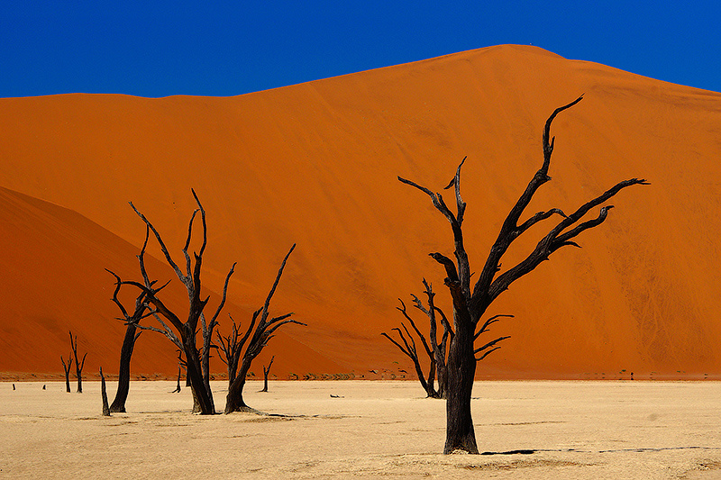 Представьте себе место, где время словно остановилось миллионы лет назад. Где песок дышит древностью, а мертвые деревья стоят, как призраки прошлого, среди огненных дюн. Это не фантастика и не кадр из фильма о другой планете — это пустыня Намиб, одна из самых загадочных и древнейших ландшафтных жемчужин Земли, расположенная в Намибии, на юго-западе Африки. Пустыне Намиб более 55 миллионов лет — да, вы не ослышались. Это самая старая пустыня в мире, и именно это делает её такой особенной. Несмотря на экстремальные условия, Намиб не только выжила — она сохранила атмосферу прошлого, будто бы став окном в доисторическую эпоху. На её территории обитают редчайшие формы жизни, включая жуков, которые умеют собирать влагу из тумана, и растения, способные выживать в полном отсутствии воды. Но даже это не самое поразительное. Одна из самых завораживающих достопримечательностей пустыни — это Соссусфлей (Sossusvlei), знаменитая глиняная котловина, окружённая оранжево-красными дюнами высотой до 300