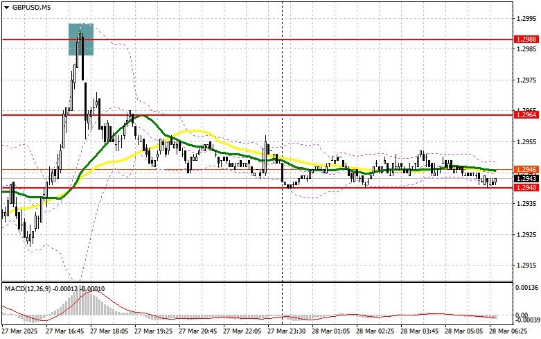 Вчера было образовано несколько точек входа в рынок. Давайте посмотрим на 5-минутный график и разберемся с тем, что там произошло. В своем утреннем прогнозе я обращал внимание на уровень 1.2916 и планировал от него принимать решения по входу в рынок. Прорыв и обратный тест 1.2916 позволил войти на покупку фунта, что вылилось в рост пары лишь на 10 пунктов, и до нормального восходящего движения я в рынке не дотянул. Во второй половине дня резкий рост пары и ложный пробой в районе 1.2988 стали идеальным условием на продажу GBP/USD, что вылилось в падение пары более чем на 40 пунктов.