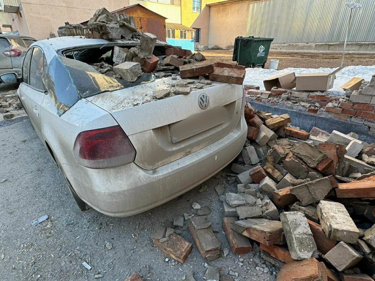 В Уфе обрушилась кирпичная стена магазина. Она раздавила две иномарки