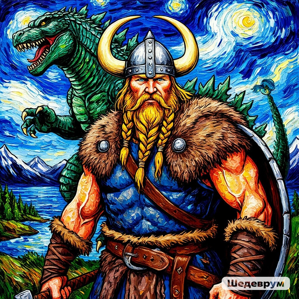 Древние викинги собрались вместе, Чтобы сразить Годзиллу, чудовище нечестное. Огромный и страшный, он пришел на землю, Чтобы уничтожить все, что есть на пути. Викинги взяли свои мечи и щиты, И встали против Годзиллы, готовые к битве. Они не боялись, они были смелы, Их сердца были полны отваги и страсти. Годзилла ревел и бросал огонь, Но викинги не дрогнули, не пали в страхе. Они атаковали его силой и мощью, Их мечи блестели, их щиты были крепки. Битва шла долго и жестоко, Но викинги не сдавались, не отступали. И наконец, после многих часов борьбы, Годзилла был побежден, его сила сломлена. Викинги победили, они праздновали свою победу, Их имена будут воспеты веками вперед. Их отвага и мужество стали легендой, Их битва с Годзиллой стала эпосом великим.