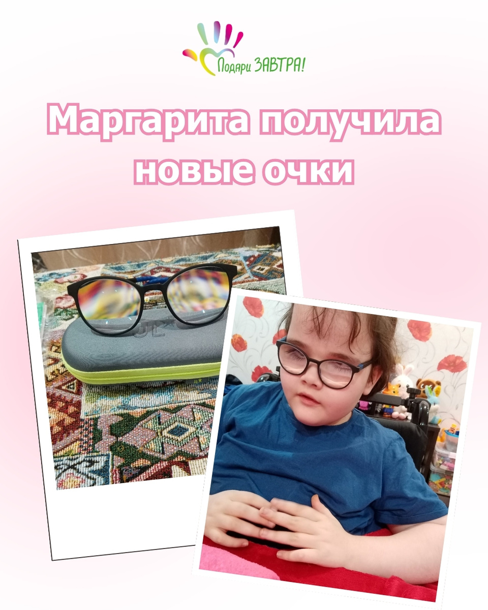 Недавно в жизни Маргариты произошло важное событие: она получила новые корригирующие очки, стоимостью 53 029 рублей, которые помогут ей лучше видеть и познавать окружающий мир. Это не просто аксессуар, а возможность видеть лица родных, рассматривать любимые книги и наслаждаться яркими красками жизни. Это маленькое, но очень важное чудо стало возможным благодаря вам. Мама девочки с трепетом делится радостью: «Очки Маргарите очень нужны, чтобы она могла видеть всё вокруг, как другие дети. Старые она сразу поменяла на новые – теперь её мир стал ярче и понятнее. Спасибо, что поддерживаете нас и не даёте опускать руки! Спасибо, что вы все оказались рядом в такой непростой период для нашей семьи». Девочке 9 лет, основной диагноз: ДЦП. Маргарита родилась на 27-й неделе и с первых дней жизни оказалась в реанимации. Маленькое сердечко боролось за каждую минуту, а за первый год жизни девочка перенесла 9 тяжёлых операций. Несмотря на диагнозы и ограничения, Маргарита остаётся любознательной, люби