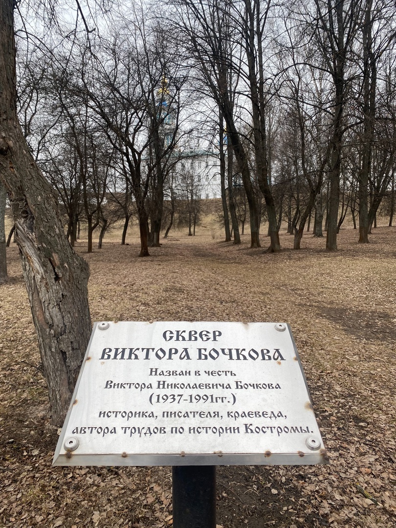 Сквер был назван в честь Виктора Бочкова — ученого-исследователя, краеведа. В свое время Виктор Николаевич успел много сделать для музея-заповедника Щелыково. Он спасал следы прошлого и делал их достоянием своих современников. Работал талантливый человек практически до самой смерти в 1991 году.