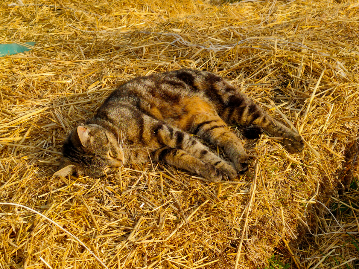 Всем привет 👋 Вот это погодка стоит... Тепло, птички поют, пчёлки летают:) Коты спят везде:) Кто дома, кто на сеновале, кто под деревом... Самые счастливые животные:) Вот так весь день просто греть шкурку под лучами солнца, наверное, здорово:) Я бы с удовольствием так повалялась рядом, но очень хорошо знаю, что солома и сено колются:) А еще я даже не представляю, сколько градусов на улице. Мои градусники постоянно разбиваются и я просто решила их больше не покупать:) Вот от слова Не везёт... Знаю, что в морозилке есть контейнер с замороженной клубникой. Уверена, что клубника! Достала, разморозила... А это слива. Я уже 5 контейнеров сливы съела, пока клубнику ищу:( Персик подписали, а клубнику не додумались:( Ну ничего... Когда-нибудь я её найду! На днях пошли, выкопали всю ягоду и посадили их в лотки пока. Нужно будет грядку перекопать, внести туда торф и укрыть новой плёнкой, прежде чем высаживать обратно. Перебрали корни, выбросили старые и погибшие. В этом году будем активно испол