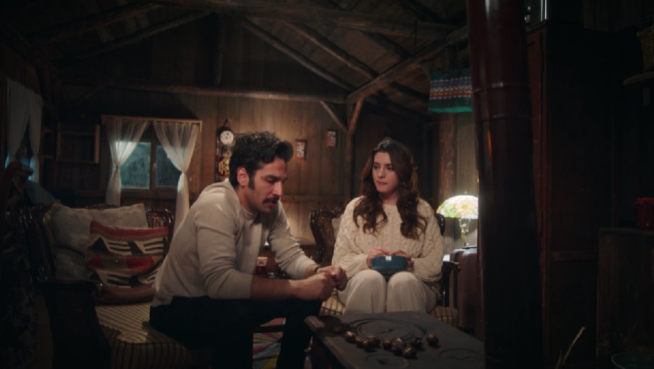 Наз и Кадир сидя в горном домике у камина, чистят каштаны. Кадир рассказывает, что этот дом начал строить еще его отец, но он не успел в нем пожить. Кадир достраивал дом уже после его смерти. Наз заметив, что Кадир погрустнел при упоминании отца, решает сменить тему и рассказывает, что ее родители решили развестись, но почему-то она не сильно из-за этого расстроилась. Наз признается, что она всегда считала, что отец и мать не подходят друг другу и возможно мама стала нервной, потому что никогда не была счастлива с отцом. Человек никогда не нервничает, там где ему хорошо и спокойно.