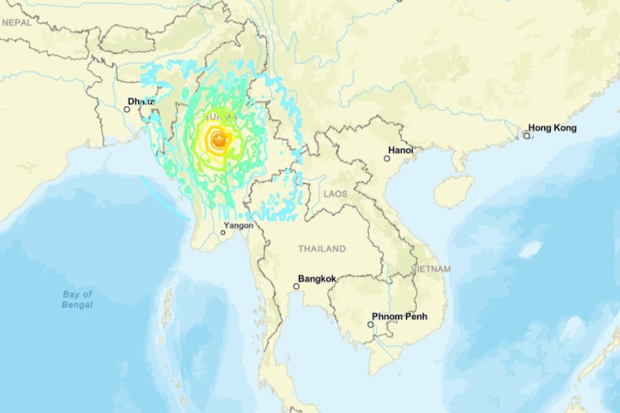 Сильное землетрясение произошло в 400 км к северо-западу от Чианг-Мая Мощное землетрясение произошло днем 28 марта в Мьянме , примерно в 400 км к северо-западу от тайской провинции Чианг-Май. Магнитуда первых толчков в 13:20 составила 7,7. Магнитуда вторых в 13:32 – 6,4. Гипоцентр землетрясения находился на глубине 10 км (данные USGS). Землетрясение ощущалось не только в Чианг-Мае, но и в других провинциях и городах Таиланда, включая Бангкок. О разрушениях и жертвах не сообщалось, но очевидцы уже публикуют свидетельства, такие как видео с выплескивающейся водой из высотных бассейнов в небоскребах Бангкока (о том, что стало известно позже здесь и здесь). Находящийся в Чианг-Мае автор «Новостей Пхукета» Лазарь Логинов рассказал, как землетрясение ощущалось в этой провинции: «Сначала начал скрипеть стул, на котором я сидел ровно и вообще не качался. Затем я заметил, что плафон покачивается с изумительной амплитудой, затем заскрипел шкаф и я встал со стула, чтобы посмотреть, что проис