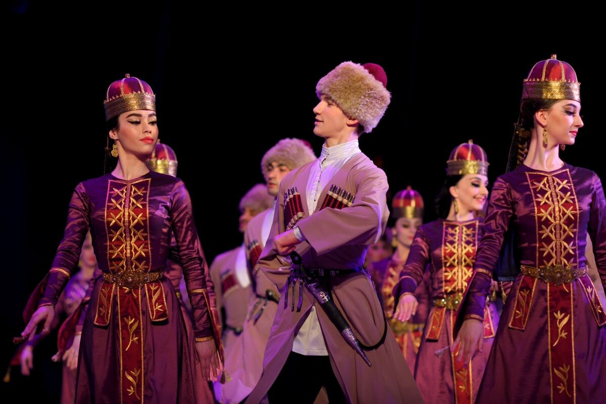 Концерт ансамбля «Нальмэс» – это красочное и зрелищное событие. Ансамбль представляет красоту и своеобразие адыгского танца, который отражает энергию народа, стремления к свободе и силу духа. Высокое мастерство более 60 артистов на сцене, их костюмы и композиции в исполнении оркестра захватывают зрителей с первого номера.