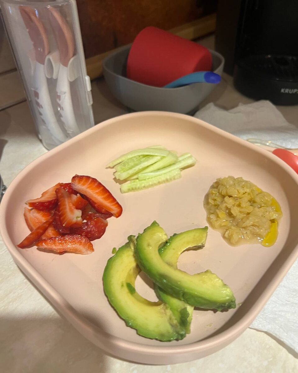 Самоприкорм: Неделя 3 Правильная консистенция еды - руководство по возрастам Хочу обратить ваше внимание на то, что даже по системе Самоприкорма консистенция имеет значение. На моих фото вы видете еду, которая еще не преобрела свой размазанный и раздавленный вид ☺️ Практически вся она мягкая. Если на тарелке нут, горошек или фасоль, то её стоит размять вилкой для деток в 6-7 месяцев. Подготовила для вас гайд - Сохраняйте 🩷 Какая консистенция пищи подходит ребенку в разные возрастные периоды: 6️⃣+ месяцев: 📎Допустимо пюре (домашнего или промышленного производства), но не в качестве основного рациона 📎Еда, размятая вилкой 📎Натертые на терке продукты 📎Нарезанные тонкой соломкой 📎Очень мелко нарезанные кусочки 9️⃣+ месяцев (иногда 8+): 📎Появляются кубики размером около 1 см 📎Тонкие полукружия Такой формат связан с развитием пинцетного захвата, у нас он проявляется с 7,5 месяцев. 1️⃣2️⃣+ месяцев: 📎Кусочки, которые ребенок может самостоятельно взять пальчиками 📎Размер кусочка
