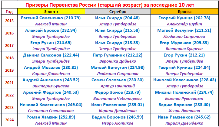 31 марта в Казани начинается последний главный турнир сезона под названием Первенство России по старшему возрасту , после которого можно будет уже прогнозировать состав сборной России на следующий сезон, что я сделаю в одной из будущих статей. В число участников предстоящего Первенства входят как юниоры, так и новисы от 12 до 18 лет (2007-2013 г.р.), которые ранее успешно выступили в одном из 6 отборочных региональных турниров. Соревнования пройдут во всех 4х дисциплинах. Давайте посмотрим на составы участников в одиночных дисциплинах, которые я представлю через информативные таблички, дополненные текстовой информацией о главных претендентах на высокие места. В качестве бонуса посмотрим на таблички с победителями Первенства России (ст. возраст) за последние 10 лет (в 2020 году турнир не проводился из-за пандемии).