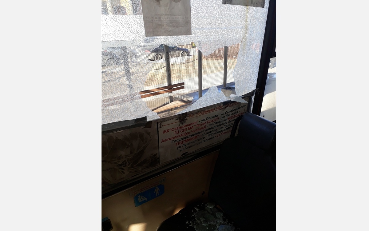 Стекло в маршрутке разлетелось вдребезги, осколки посыпались на людей
