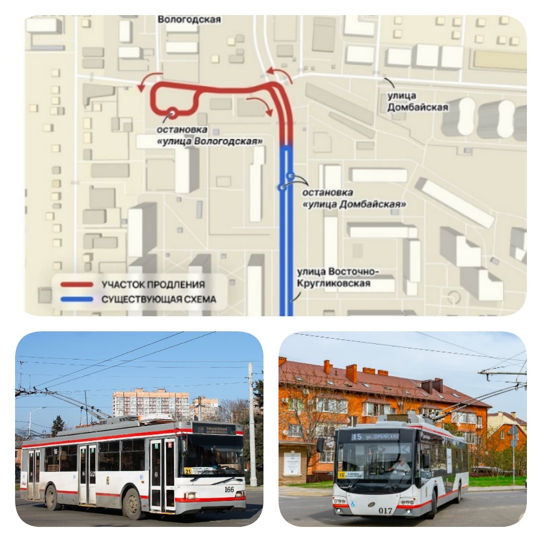 Продлена троллейбусная линия с улице Домбайской до улице Вологодской 27 марта 2025 года в Краснодаре продлена троллейбусная линия маршрутов 15 и 21 с остановке улица Домбайская расположенная на улице Восточно - Кругликовской до остановке улица Вологодская расположенная на улице Домбайской. Связано с окончанием реконструкции улице Домбайской, где были выполнены работы по устройству разворотного кольца и конечной останки в районе улице Домбайской и Вологодской троллейбусной линии. Читайте Городской транспорт Краснодар vk.com/gortranskrd ok.ru/gortranskrd dzen.ru/gortranskrd