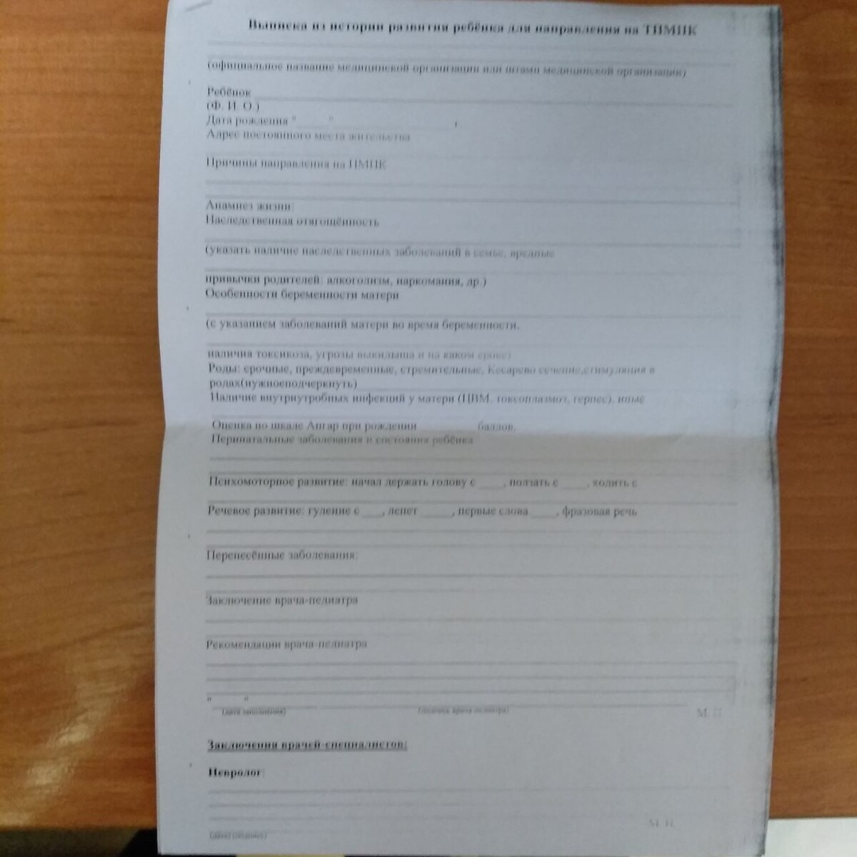 Еще в прошлом году при прохождении медосмотра по исполнению ребенку трех лет невролог дал нам направление к детскому психиатру, который рекомендовал через год встать на очередь на ПМПК у того же невролога. И вот прошел год, пришли мы к неврологу (правда, тот уволился и на его место пришел другой врач) и тут вдруг выяснилось, что направление на ПМПК дает не невролог, а психотерапевт. Мы спустились на первый этаж к психотерапевту, но у него прием должен был начаться только с 12 часов, а к неврологу мы записывались на 10 утра. К нашему счастью (в последствии выяснится, что как раз наоборот), врач оказался на рабочем месте и вместе с ним в кабинете присутствовала заведующая отделением, которая и сообщила, что никакого направления нам не дадут, но на очередь так и быть поставят (и то после звонка в психоневрологический диспансер). Назначили нам ПМПК через две недели и просили заглянуть к психиатру, чтобы взять выписку и направление. Поехали мы к психиатру, а там никто слыхом не слыхивал н