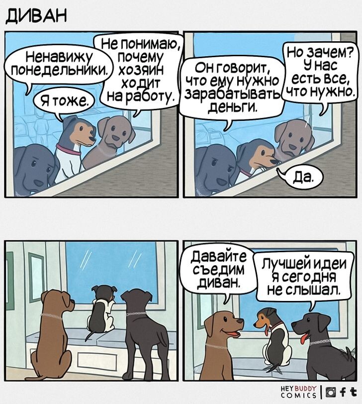 С ранних лет автор комиксов Hey Buddy Comics сочинял короткие диалоги со своим питомцем. Недавно он осознал, что эти истории могут вызвать улыбку, подарить радость или заставить задуматься других людей. Вместе с художником-соавтором они начали создавать комиксы. Нам понравились их работы, и мы решили поделиться с вами лучшими из них.