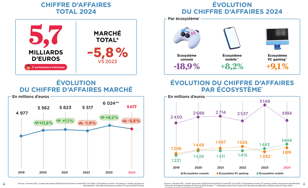 Французские геймеры продолжают тратить на видеоигры много денег. 2024 год не смог повторить рекордных показателей предшествующего, но тоже выдал отличные цифры. Разница между 2024 и 2023 годами составила всего 5% в пользу последнего.