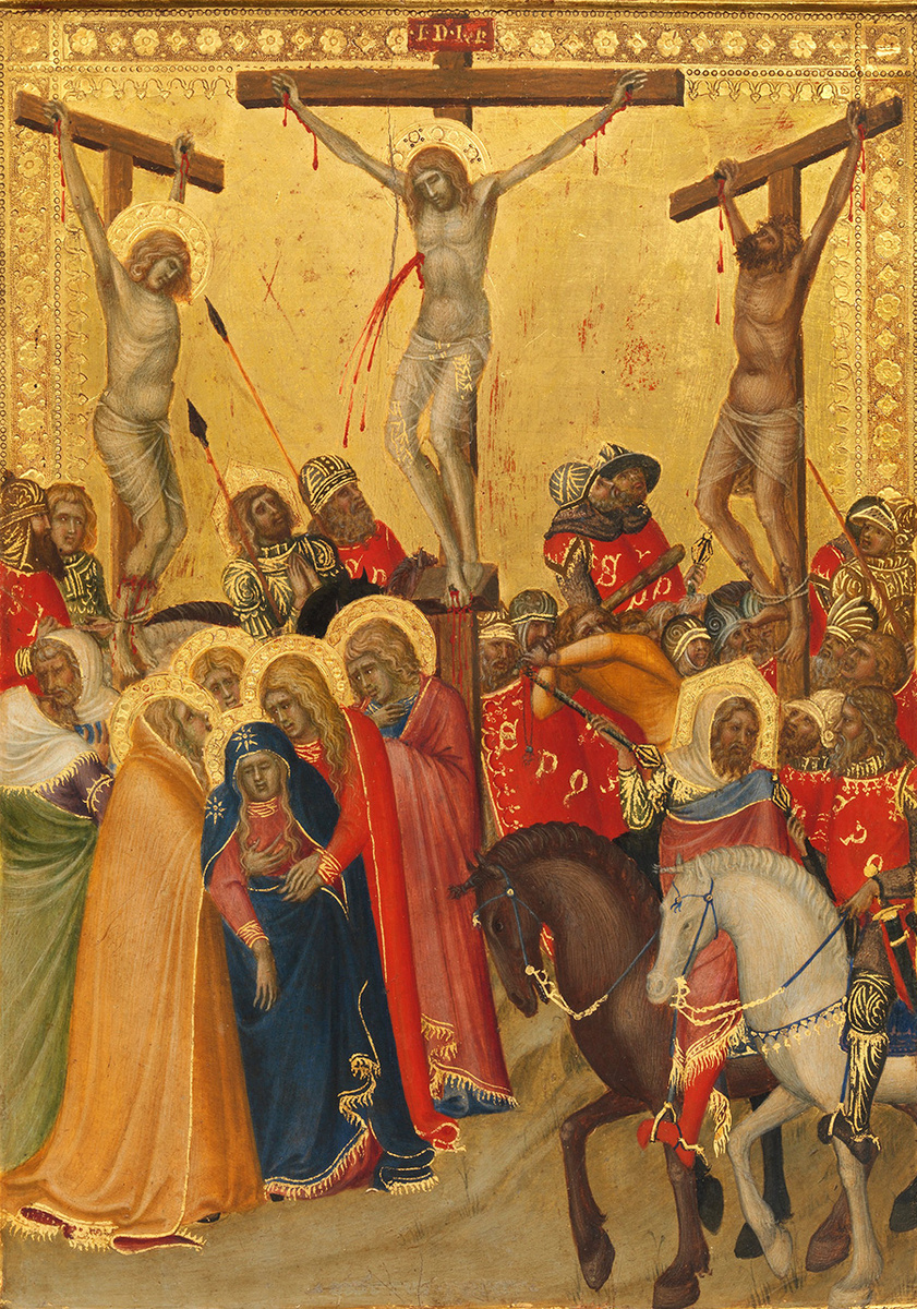 Эта изысканная картина итальянского художника Пьетро Лоренцетти (ок. 1280-1348) поражает необычайной драматичностью. Она, скорей всего, была частью переносного алтаря, из которого известна ещё одна панель: Христос перед Пилатом (Пинакотека Ватикана, Ватикан). Хотя, первоначально могло быть четыре (а возможно, и шесть) панелей, изображающих Страсти Христовы. Как и его брат Амброджо, Пьетро Лоренцетти является одним из истинных новаторов итальянского искусства. Обучаясь в Сиене у Дуччо (1255/60–1319), он был внимателен как к скульптуре Джованни Пизано (ок. 1250–1315), так и к живописи Джотто (1266/67–1337). Его фрески в базилике Сан-Франческо в Ассизи являются памятником выразительного натурализма. Хотя рассматриваемая панель и невелика (41,9 x 31,8 см), она в полной мере отражает размах его воображения. Каждая её деталь свидетельствует о способности Пьетро придать распространённому библейскому сюжету человеческое измерение. Особенно примечательны падающая в обморок Дева Мария, поддерж
