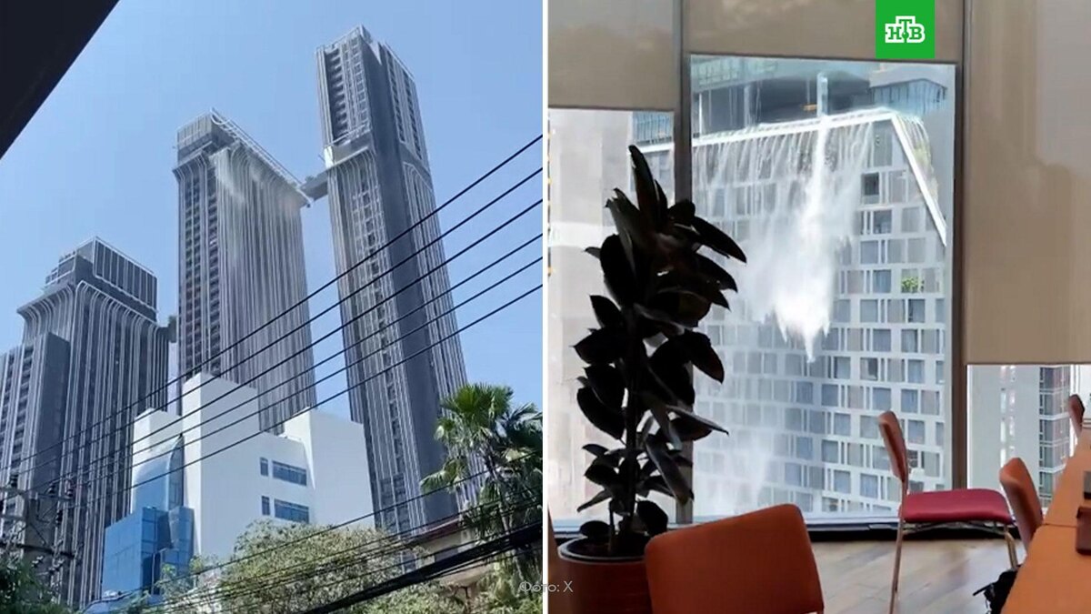 В Бангкоке во время сильного землетрясения высотки шатало так, что вода выплескивалась из бассейнов, расположенных на крышах зданий.