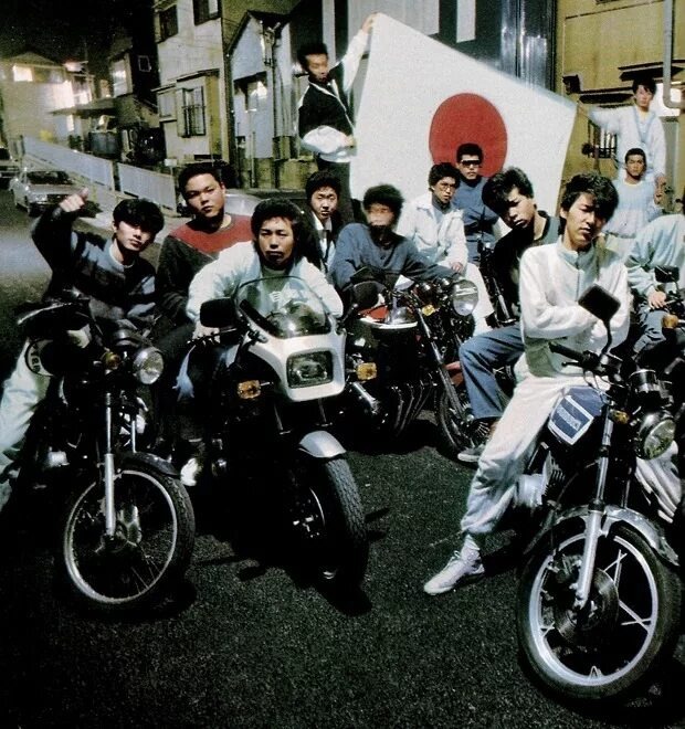 После Второй мировой войны в Японии появились молодёжные группировки, одна из ярких примеров bosozoky (bo (bou) – агрессивный, антисоциальный; so(sou)-мобильные, ездящие на мотоциклах; zoku-банда, группировка). Заметить членов банды можно было по шуму их мотоциклов т.к. выхлопная система часто отсутствовала, по яркой окраске, уникальным обвесам из-за которых порой было сложно узнать модель и конечно же одежде. Их поведение на дорогах соответствовало стилю — это превышения скорости в несколько раз, опасная езда по плотному потоку машин в считанных миллиметрах от них же.