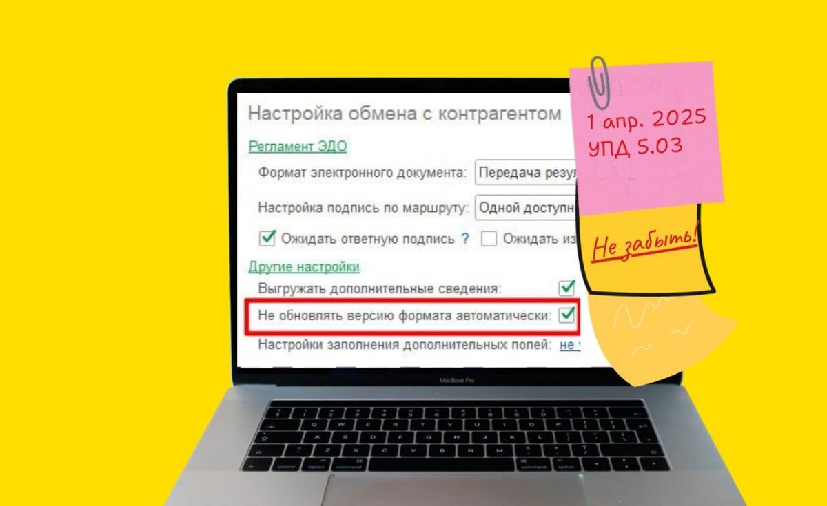 ВАЖНО! С 1 апреля УПД будет автоматически формироваться в формате 5.03 у всех пользователей 1С-ЭДО, кроме тех, у кого в настройках отправки стоит флаг — Автоматически не обновлять версию формата. Рекомендуем проверить ваши настройки.