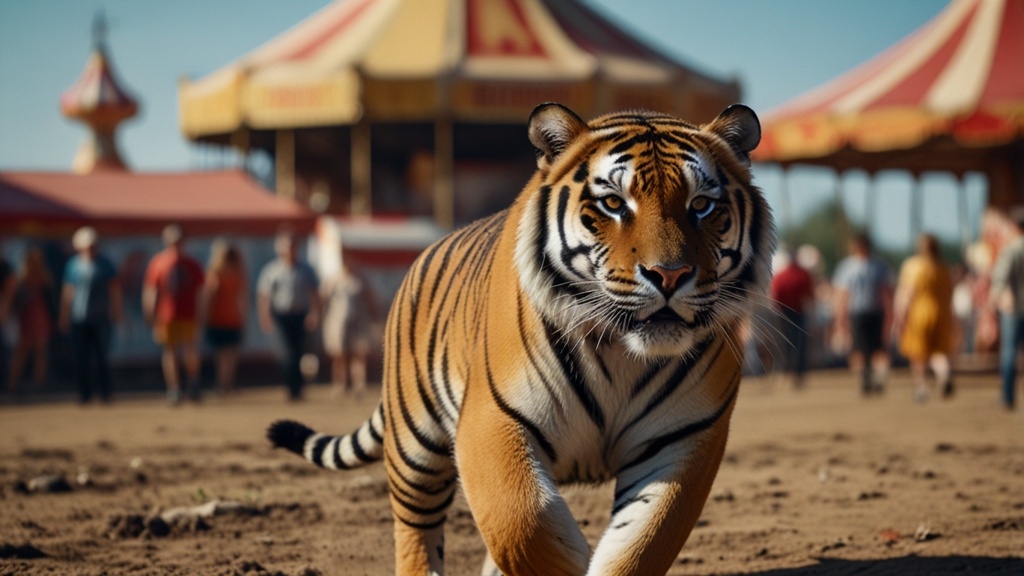 Колобок осторожно приподнялся на кровати. Сквозь тонкие стены комнаты доносились странные звуки — не шорох, не скрип, а скорее приглушённое дыхание, перемежающееся тихим, почти жалобным рычанием. Он толкнул Рыжулю лапой. – Рыжуля, проснись! – прошептал Колобок. – Кажется, что-то не так. Рыжуля встрепенулась и прислушалась. Ее чуткий слух тут же уловил тревожные нотки в ночной тишине. – Это… тигр! – прошептала она, испуганно округлив глаза. – Он не должен быть на свободе! Они осторожно приоткрыли дверь и заглянули в коридор. Полумрак, проникавший сквозь щели в стенах, лишь усиливал ощущение опасности. В конце коридора, возле двери дрессировщика, они увидели огромную тень, метавшуюся из стороны в сторону. Рык стал громче и отчётливее. – Он пытается выломать дверь! – прошептала Рыжуля. – Нужно что-то делать, пока он не вырвался на свободу! Колобок, несмотря на охвативший его страх, вспомнил о клоуне, которому они помогли. – Нужно разбудить клоуна! – сказал он. – Может, он что-нибудь приду
