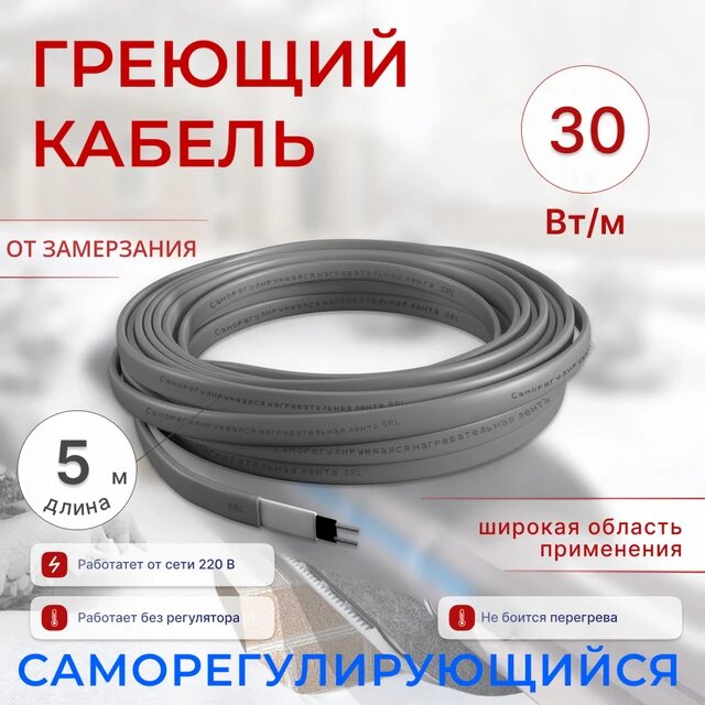 1. ⭐ Греющий кабель 30 Вт/м, 5 м длина