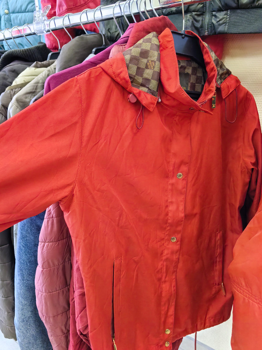 Оно идеально село на меня, состояние у него было новое, только налипли нитки, от рядом висящих вещей.