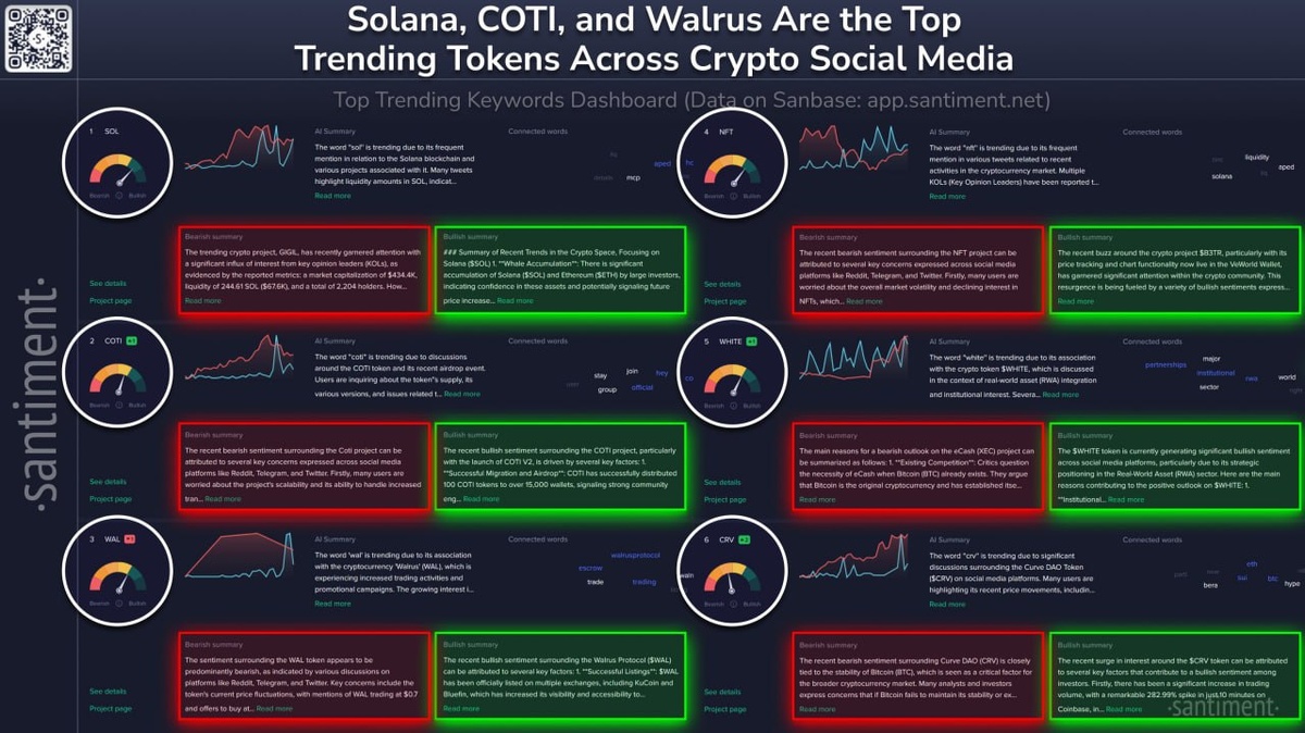 Криптовалюты с наибольшим ростом интереса трейдеров, согласно данным с X (бывший Twitter), Reddit, Telegram, 4Chan, BitcoinTalk и Farcaster: