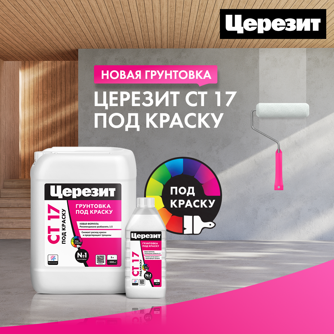 Обязательно: для повышения стойкости покрытия, более равномерного нанесения и экономии краски. Согласитесь, немало причин попробовать нашу новинку. Грунтовка Церезит СТ 17 под краску: