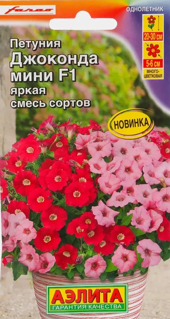 Петуния мини Джоконда яркая смесь сортов F1 – это уникальный гибрид итальянской селекции от компании Farao, представленный агрофирмой