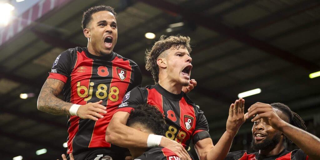 Керкез (в центре) создал оба гола, когда «Борнмут» обыграл «Манчестер Сити» со счетом 2:1 в ноябре (Робин Джонс — «АФК Борнмут»/«АФК Борнмут» via Getty Images)