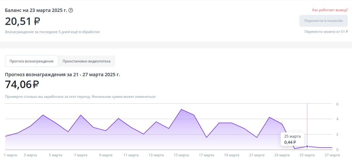 На второй месяц уже можно понять, что больше 100 рублей с 400 видео не заработать. Непонятно, что за остановка видеопотока, что за 145 рублей болтаются из месяца в месяц. И это продукт Газпром-медиа!!