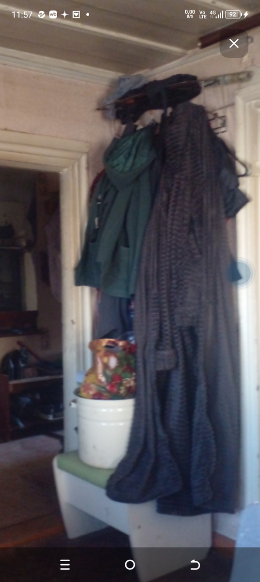 Не знаю, уж, как можно на халат подумать, что это шуба из стриженный норки, но кто-то так и подумал. Это фото из старой статьи. Думаю, халат стал легендарным благодаря моим читателям. Он же поближе. На тот момент было много сплетен и домыслов. Типа, из дома меня выгнали и сделали бомжом. Статья и была по этому поводу. Жили на хуторе и я приезжала домой за вещами. На фото разглядели сапоги на каблуках. Многие уверяли, что не мои. Почему у меня их быть не может? Другое дело куда в них ходить. Абсолютно некуда. На этих фото халат новый. Подарил читатель Сергею на день рождения. Рисунок другой и цвет хоть и похож, но нет другой тоже, включая размер. Этот 50 тот, если не ошибаюсь 56. Говорят, у меня с мозгами плохо-атрофировались, а что не так с людьми которые в халате видят шубу? Со мной как раз всё нормально. Что-то не так с человеком, который обещал прислать продукты такие, чтобы меня скорее не стало на этом свете. Очень я этому человеку мешаю. В Подмосковье были посылы в мой адрес тако