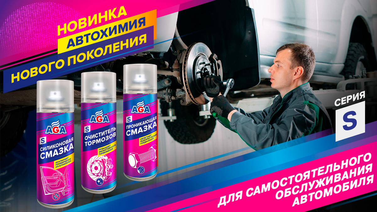 Тогда вам обязательно пригодятся аэрозольные составы AGA из сервисной серии S . Они значительно ускоряют и облегчают работы, выполняемые как при плановом ТО, так и во время ремонта. Чтобы убедиться в эффективности этих продуктов, посмотрите видеообзор, в котором специалисты компании проводят наглядные эксперименты, где демонстрируются рабочие свойства и ключевые преимущества препаратов от AGA. Делитесь полезной информацией с друзьями! *** Еще больше продуктов для вашего автомобиля – на сайте и страницах бренда AGA в социальных сетях: Сайт: https://aga-products.ru