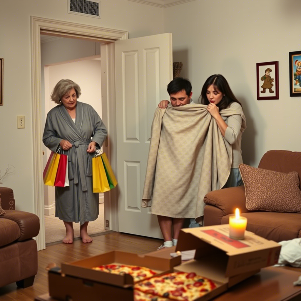 Было около полуночи. Мы с мужем, укутавшись в плед, смотрели фильм, когда дверь резко распахнулась. На пороге стояла свекровь с двумя пакетами продуктов. Её взгляд мгновенно оценил ситуацию: наш «укрытие» из пледа, разбросанные подушки и… явно не дневной свет в комнате.