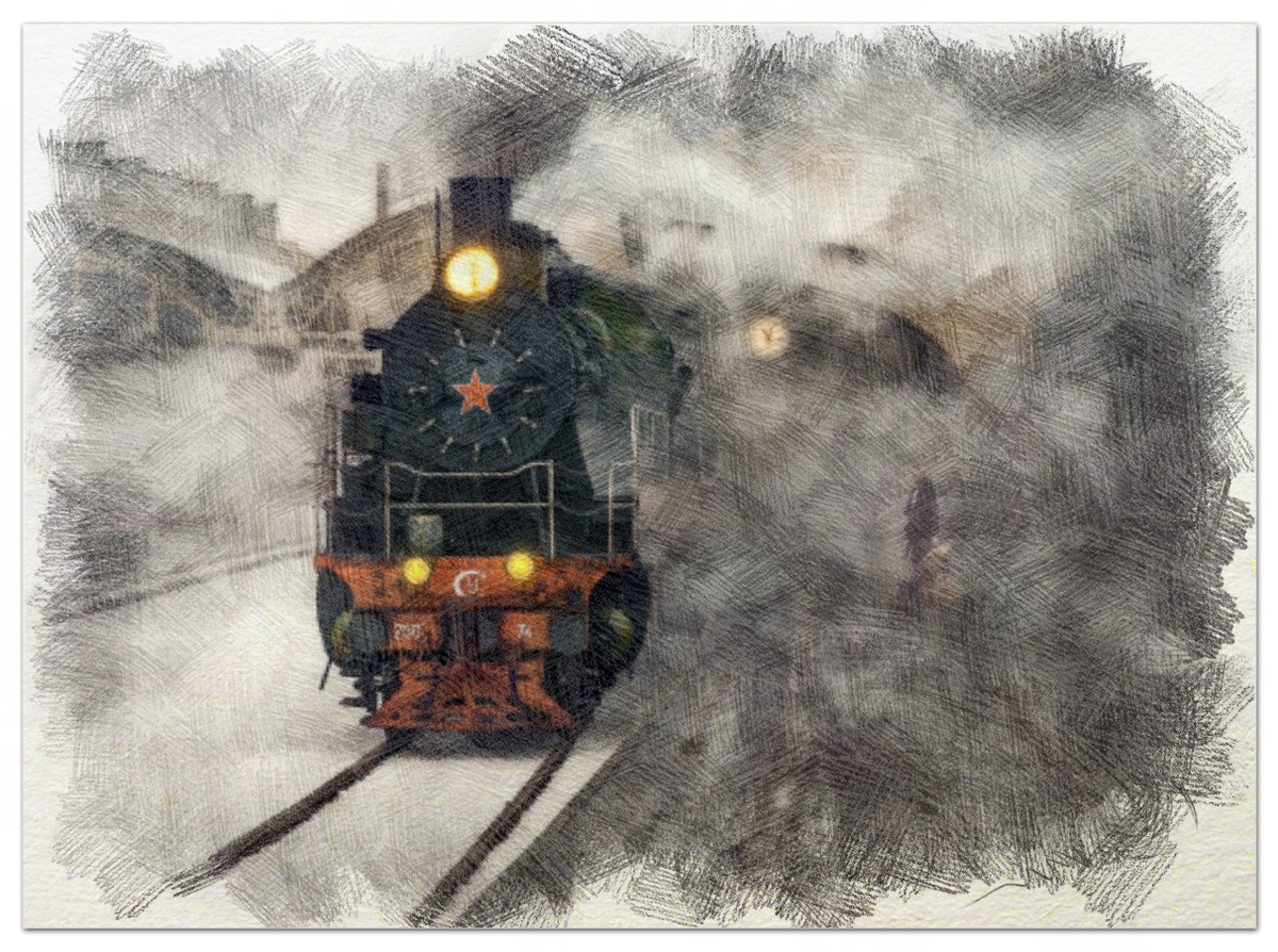 Мария шла, спотыкаясь о замерзшие колеи. Холодный ветер рвал её поношенный платок, проникал под тонкую телогрейку, пробирал до костей. Станционный фонарь мигал, будто вот-вот погаснет, освещая пустой перрон. Где-то вдалеке гудел паровоз - тот самый, что должен был положить конец её мукам.