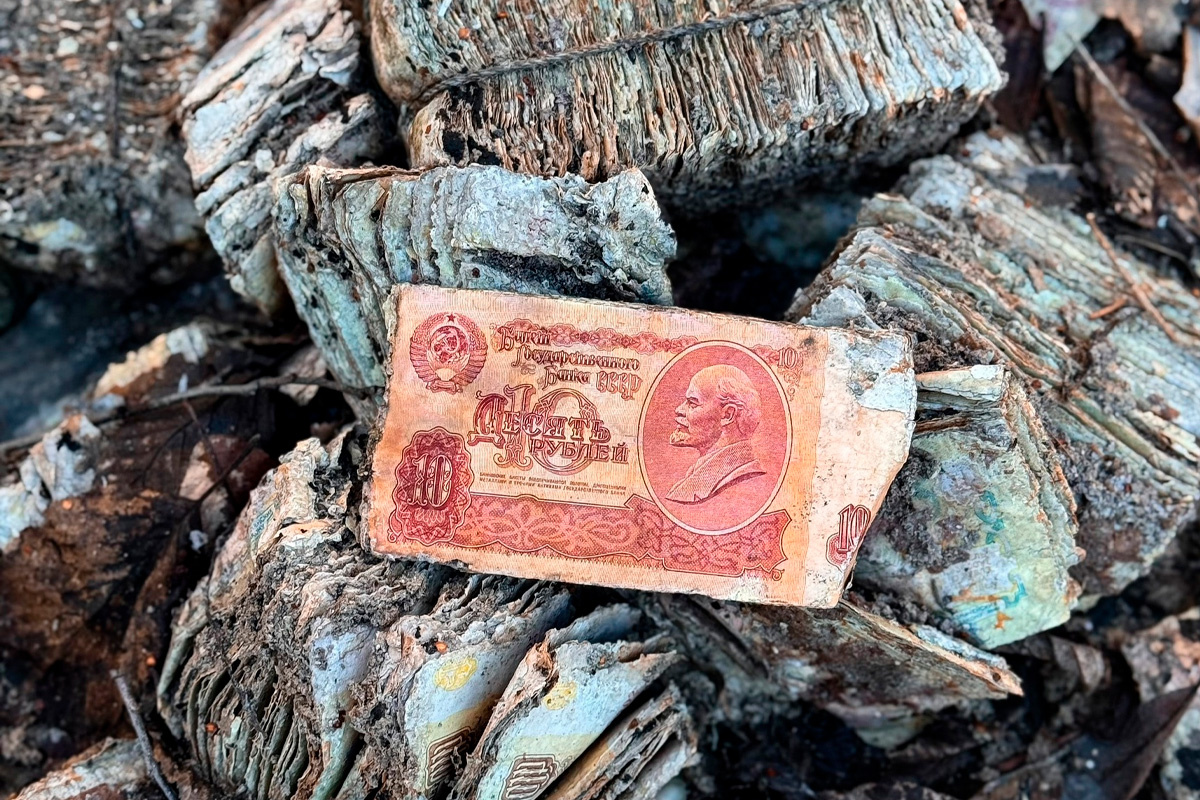Согласно информации, представленной автором блога, со временем старые военные объекты, некогда строго охраняемые, превратились в болота, которые не привлекали бы внимания, если бы не один интересный факт: именно в этих шахтах было захоронено огромное количество устаревших советских банкнот.