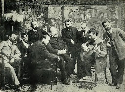 Получив письмо, Таррега повертел его в руках, положил в карман, взял гитару и продолжал игру для себя и для домашних. Гула же, очевидно, ожидает ответа и по сей день. Санкт-Петербург ушел в историю, так и не услышав Таррегу. И, наоборот, с какой пунктуальностью он приходил ко мне по средам, чтобы его могли послушать мы и некоторые его близкие друзья: Рока-и-Рока, Солес-и-Ровироса, великий театральный художник, Луис Пеллисер, преподаватель живописи, Армет, автор полных жизни, света и цветов пейзажей, доктор Гудель, известный хирург и знаменитый гитарист, Казальс, гравер и Гранадос, самый молодой из всех. Нужно было услышать Таррегу на этих концертах, чтобы оценить его по достоинству. Бледный, с бородой как у монаха капуцина, глазами, терявшимися за стеклами очков, несколько болезненной улыбкой, блуждающей где-то в усах, с телом, как бы слившимся с гитарой, белыми, тонкими пальцами почти без плоти, головокружительно пробегающими по струнам, как пауки, плетущие вместо тонких серебряных нитей самые тонкие звуки, самые изысканные гармонии. Незаметно пролетали часы и тот, кто играл, вырастал до размеров гиганта! Какое ни с чем не сравнимое наслаждение!
