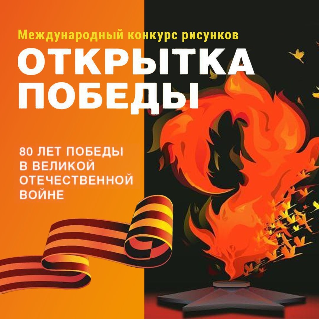 Международный конкурс рисунков «Открытка Победы» 🎨🌟 👋Создай поздравительную открытку ко Дню Победы, посвященную 80-летию Победы в Великой Отечественной войне. Ключевая тема — «Путь к Победе». 👤📲 Участвовать могут возрастные категории: дети от 6 лет и взрослые старше 18 лет. Подать заявку можно до 14 апреля на сайте Музея Победы https://clck.ru/3JX3vs ✔️Голосование пройдет онлайн с 24 апреля, когда откроется выставка на сайте Музея Победы. Открытки можно отправлять друзьям и близким! 💫Поделись своим видением Победы и стань частью истории!